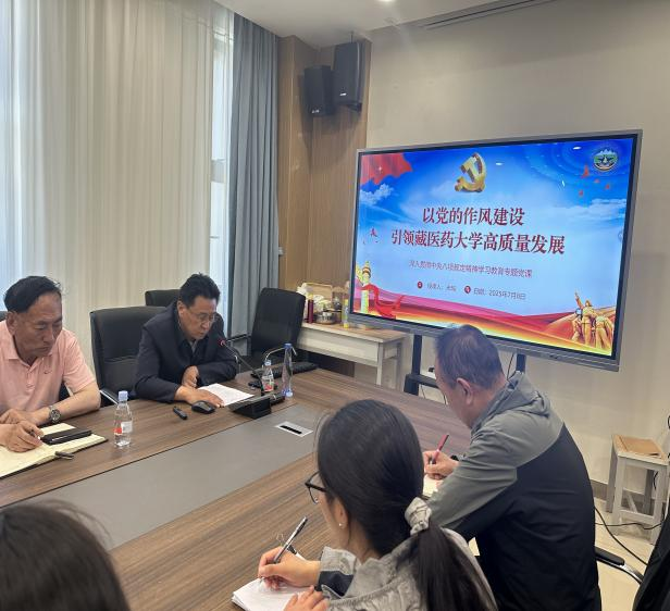 为持续强化党风廉政建设,提升党员干部纪律意识,藏药系邀请到校党委副书记、校长米玛教授为系全体师生党员讲授题为“以党的作风建设引领藏医药大学高质量发展”的专题讲座,讲座由藏药系党总支书记土登次仁主持。