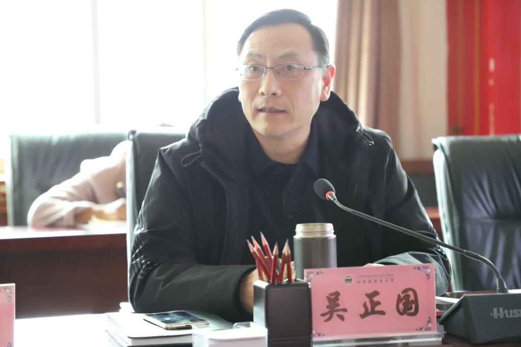 鞠明兵还从充分认识重大意义,明确把握目标要求;加强统筹安排,强化组织领导;提高政治站位,统一思想认识等三个方面就学校开展好党史学习教育提出要求。他强调,学校各党总支、直属党支部、退休党支部、临时党支部要把组织开展党史学习教育作为一项重大政治任务。学校领导和部门负责人要亲自抓,坚持以上率下,在学习上有更高标准、更高要求,在学党史、讲党史、懂党史、用党史方面发挥示范带动作用,切实把党中央决策部署和区党委具体要求落到实处,引导党员干部树立正确的国家观、历史观、民族观、文化观、宗教观。要坚持把党史学习教育与回顾总结我们党在西藏70年革命实践的成就和经验相结合,与“四讲四爱”群众教育实践、“三更”专题教育以及“培养什么人、怎样培养人、为谁培养人”教育活动有机结合起来,与扎实有力地贯彻落实党的十九届五中全会和中央第七次西藏工作座谈会精神结合起来,围绕庆祝建党100周年和西藏和平解放70周年两件大事喜事和学校新址搬迁,统筹推进学习教育和各项重点工作,切实把党员干部在学习教育中激发出的工作热情和奋斗精神转化为增强“四个意识”、坚定“四个自信”、增进“五个认同”、做到“两个维护”的实际行动,确保“十四五”开好局起好步,把智慧和力量凝聚到建设一流藏医药大学上来,为西藏长治久安和高质量发展作出应有贡献。