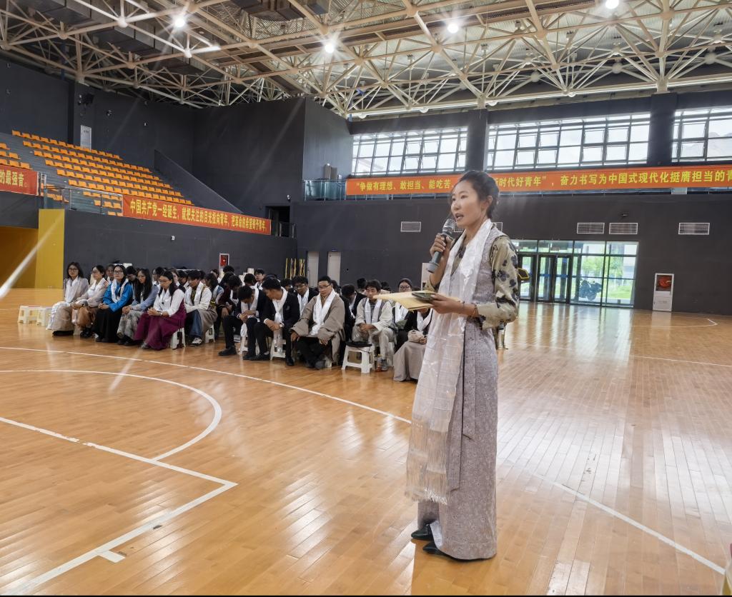 学生代表益西措姆同学分享了在校期间的成长与感悟,字里行间流露着对母校的不舍与对未来的憧憬。此外,教务处副处长拉巴次仁、学工处副处长、团委书记次仁德吉也先后为毕业生送上祝福,希望他们在未来绽放光彩。