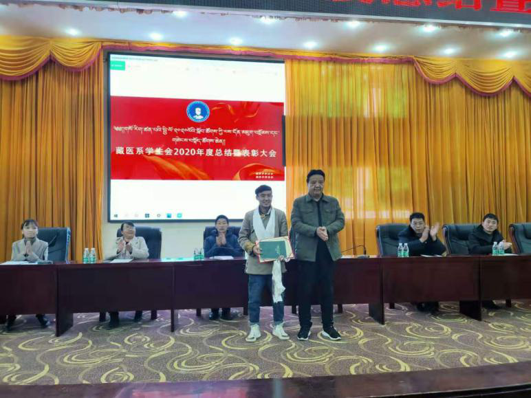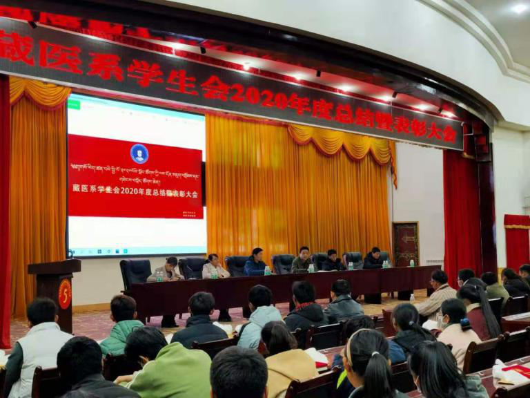 藏医系于12月10日下午召开学生会2020年度总结暨表彰大会。藏医系党总支书记、副主任达平,党总支副书记、主任占堆,副主任翟新然,副主任米玛参加了表彰大会,会议由团总支书记桑亚男主持,全体学生会干部、志愿者参加了会议。